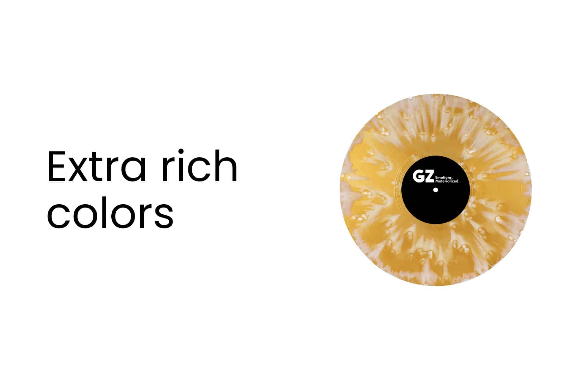 TORRENT offers clear benefits for both vinyl lovers and our customers. Music fans enjoy rich, vibrant colors, while customers gain exclusive access to an effect available only at GZ. With our global production footprint in Europe and North America, records are produced and delivered close to end markets.